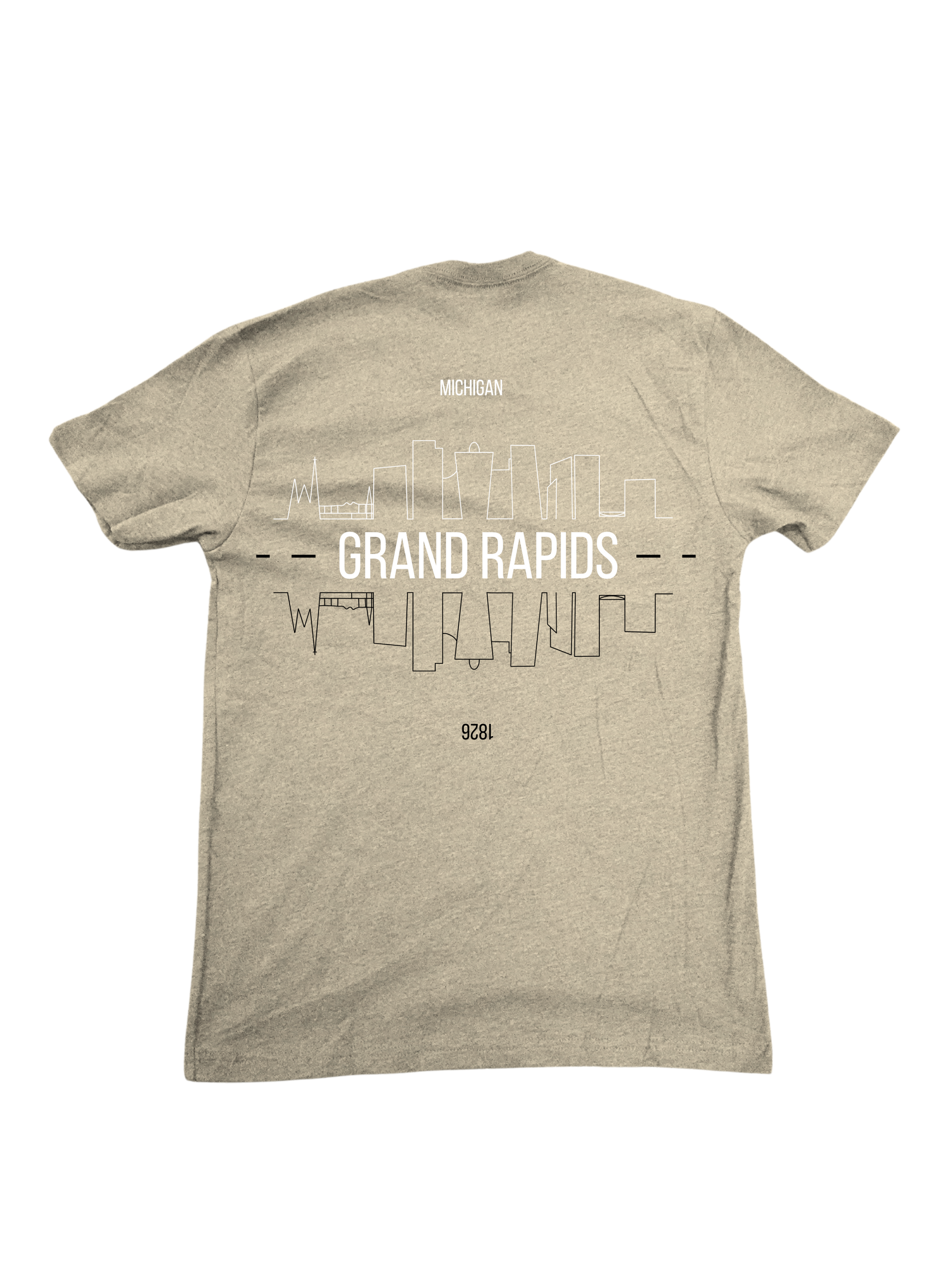 - Grand Rapids skyline graphic across the back