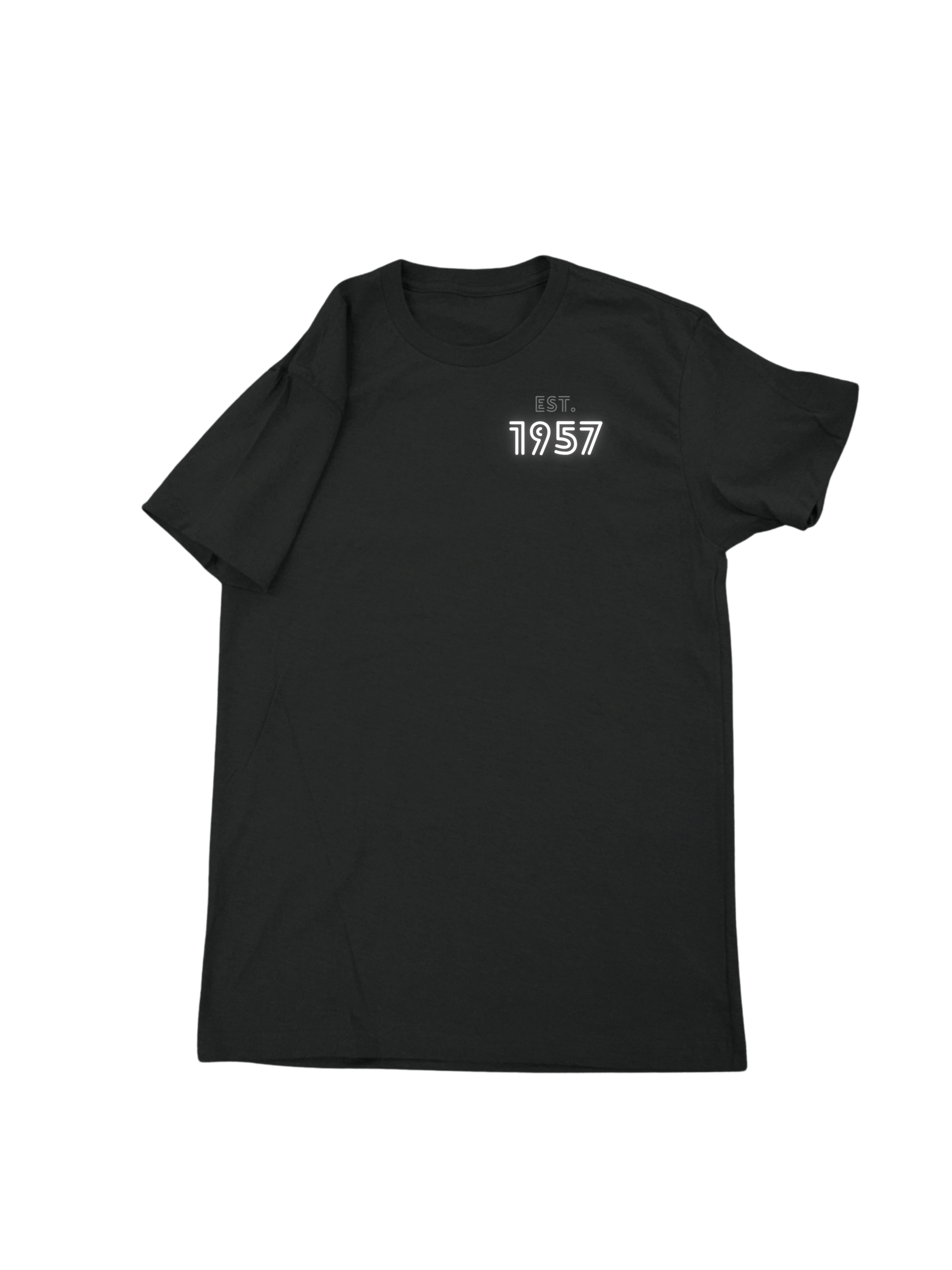 - "Est. 1957" in eye-catching neon design on the front