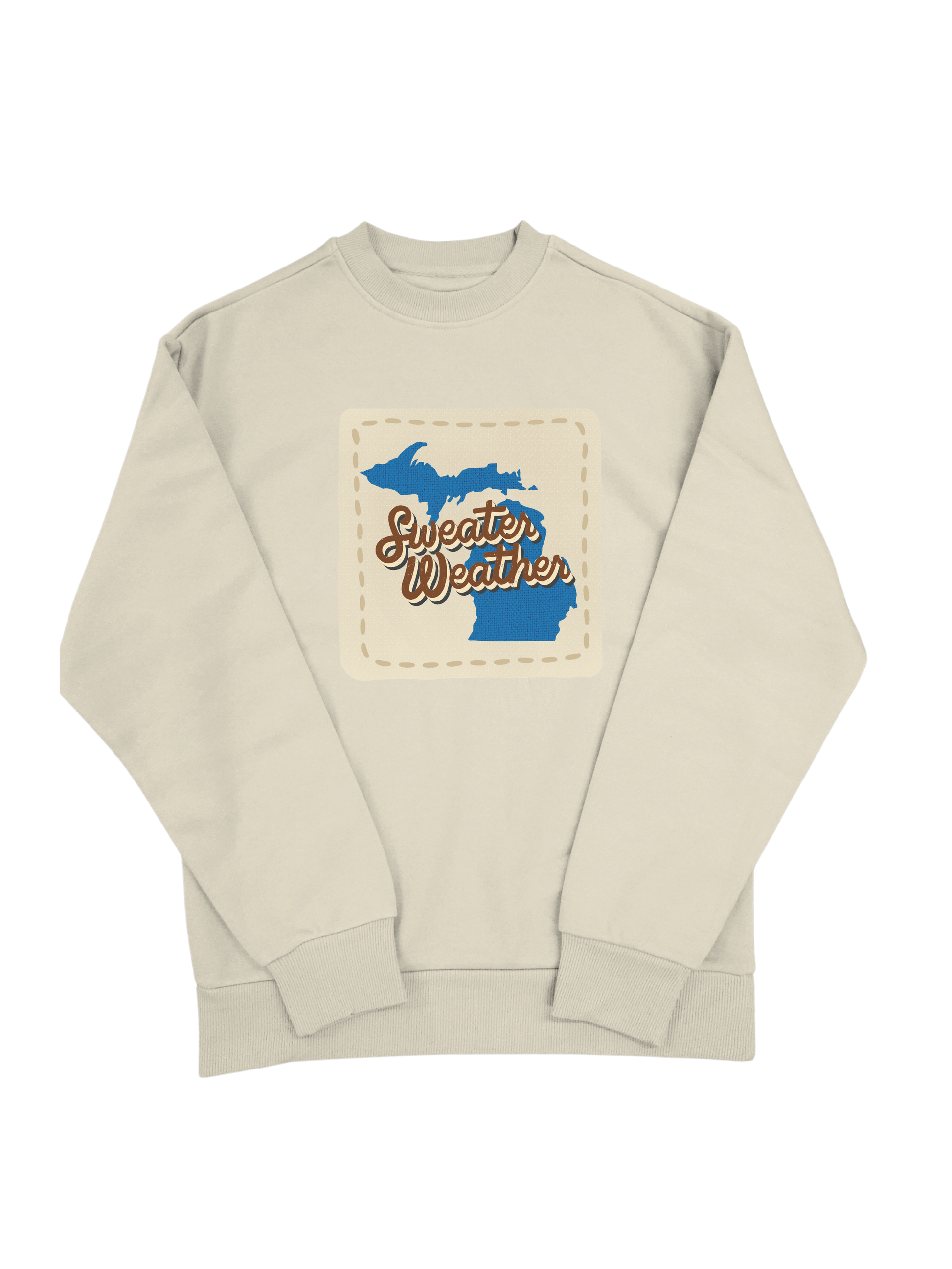 You know the feeling—that first crisp morning when you reach for your favorite crewneck, the leaves turning brilliant shades of gold and crimson, the smell of bonfires drifting through the air. In Michigan, fall isn't just a season, it's a state of mind. This crewneck captures that cozy, nostalgic feeling of sweater patch season in the Mitten.